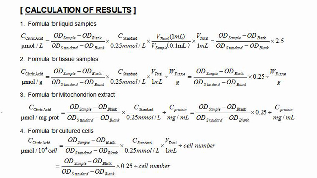 The kit is a colorimetric method for the in vitro quantitative measurement of Citric Acid in samples.