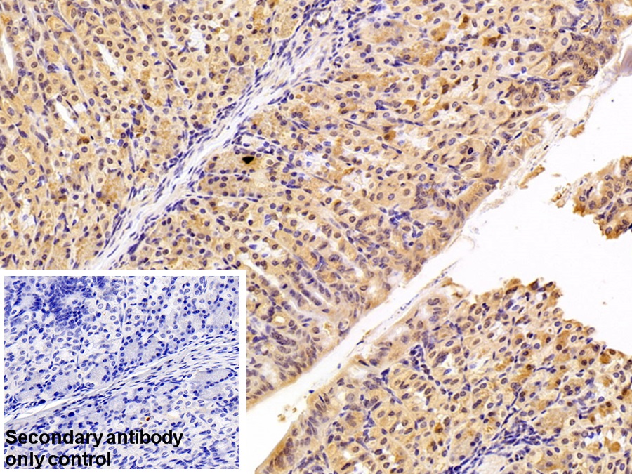 该抗体是针对CYPA的兔多克隆抗体。在免疫组织化学染色和免疫印迹实验中能识别CYPA。