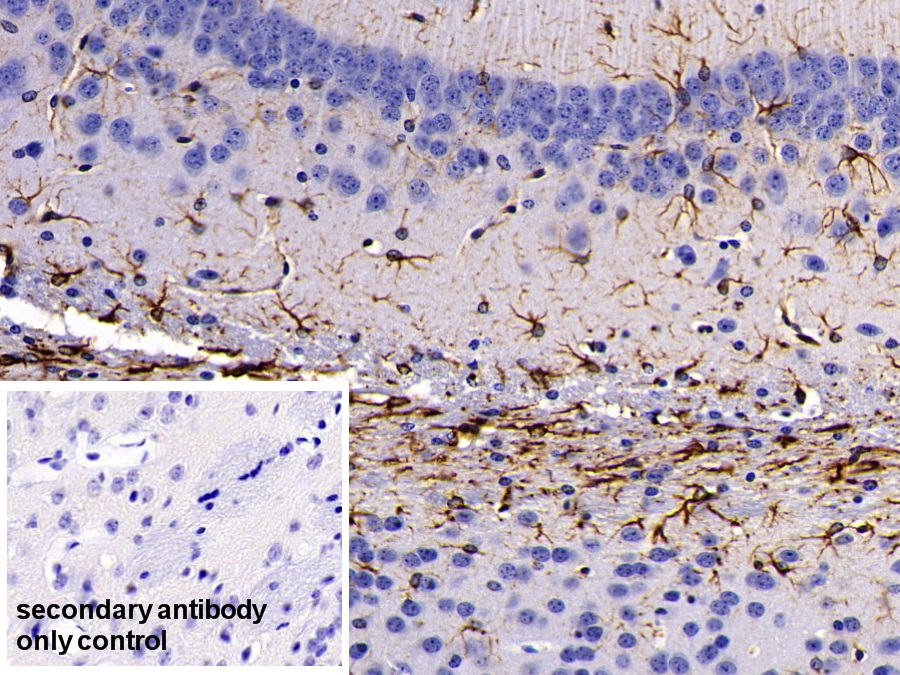 该抗体是针对GFAP的兔多克隆抗体。在免疫组织化学染色和免疫印迹实验中能识别GFAP。