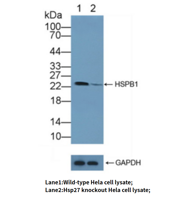 图2. 使用Hsp27 WB+IHC+IF应用优势产品进行敲除验证