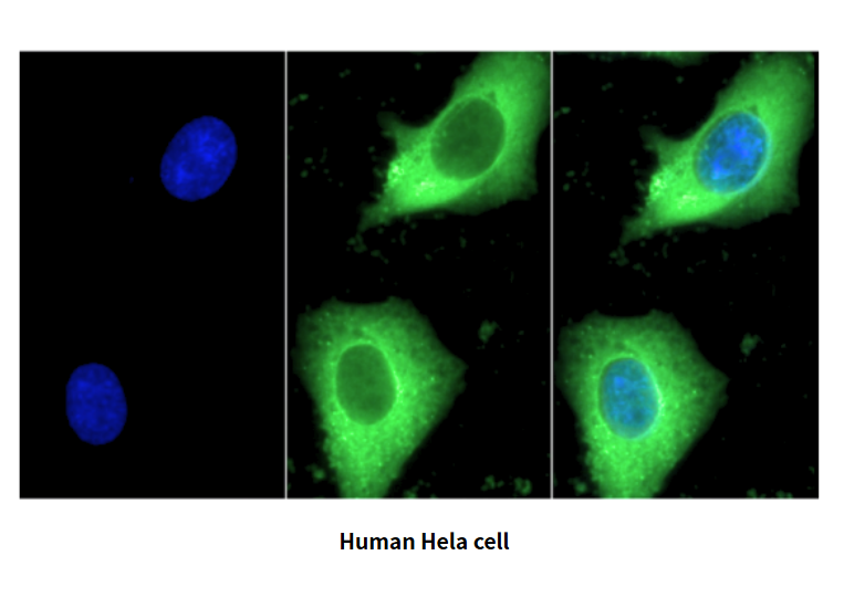图3. 使用Hsp27 WB+IHC+IF应用优势产品(绿色)对细胞进行IF分析