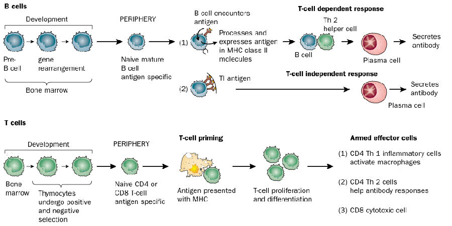 图4 T和B淋巴细胞在适应性免疫中的作用