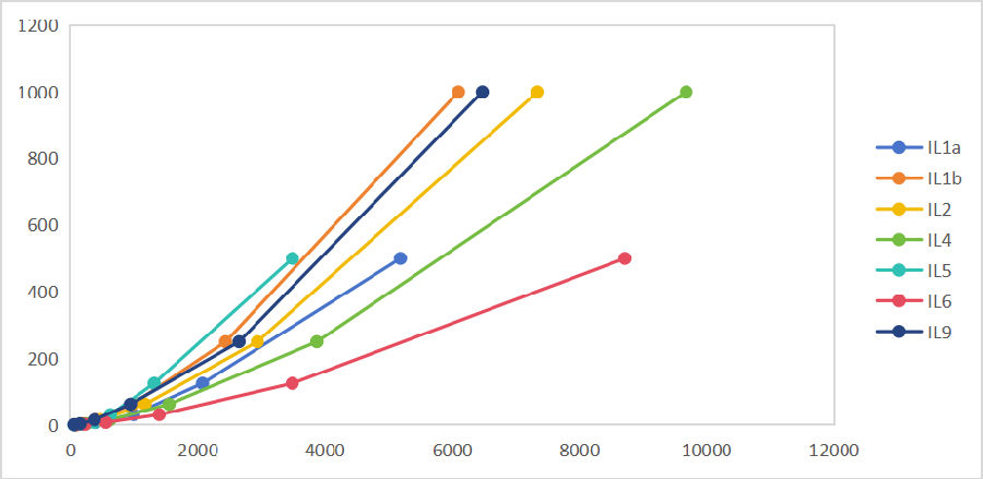 针对这些靶标的检测,云克隆开发了多因子检测试剂盒IS135系列产品,可实现多种因子的同步检测。其检测灵敏度和检测通量显著提升,并大幅降低了样本需求量(50-100μL样本,同时检测多种细胞因子),在提升检测效率的同时,有效节约了珍贵的样本。