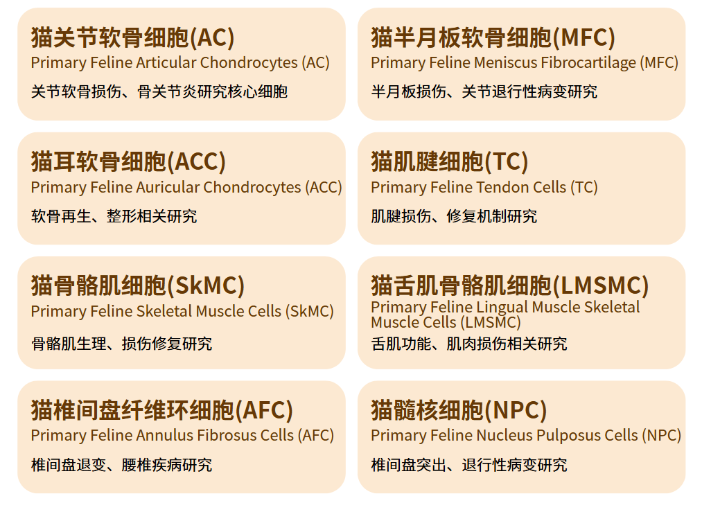 武汉云克隆猫原代细胞产品线(按研究领域分类)